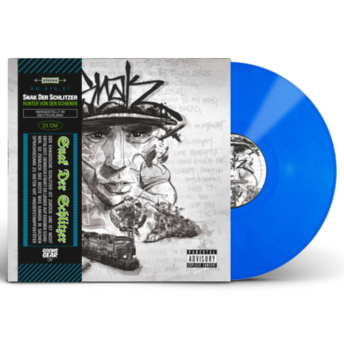 Snak The Ripper - "Off The Rails" Blue Double Vinyl GERMAN OBI Version super limited to 25 Units worldwide. We only selling 5 Units on Bandcamp. This is the first ever Vinyl release by Snak The Ripper exclusive at GoonsGear, limited to 300 Units (150 classic Black & 150 solid Blue).